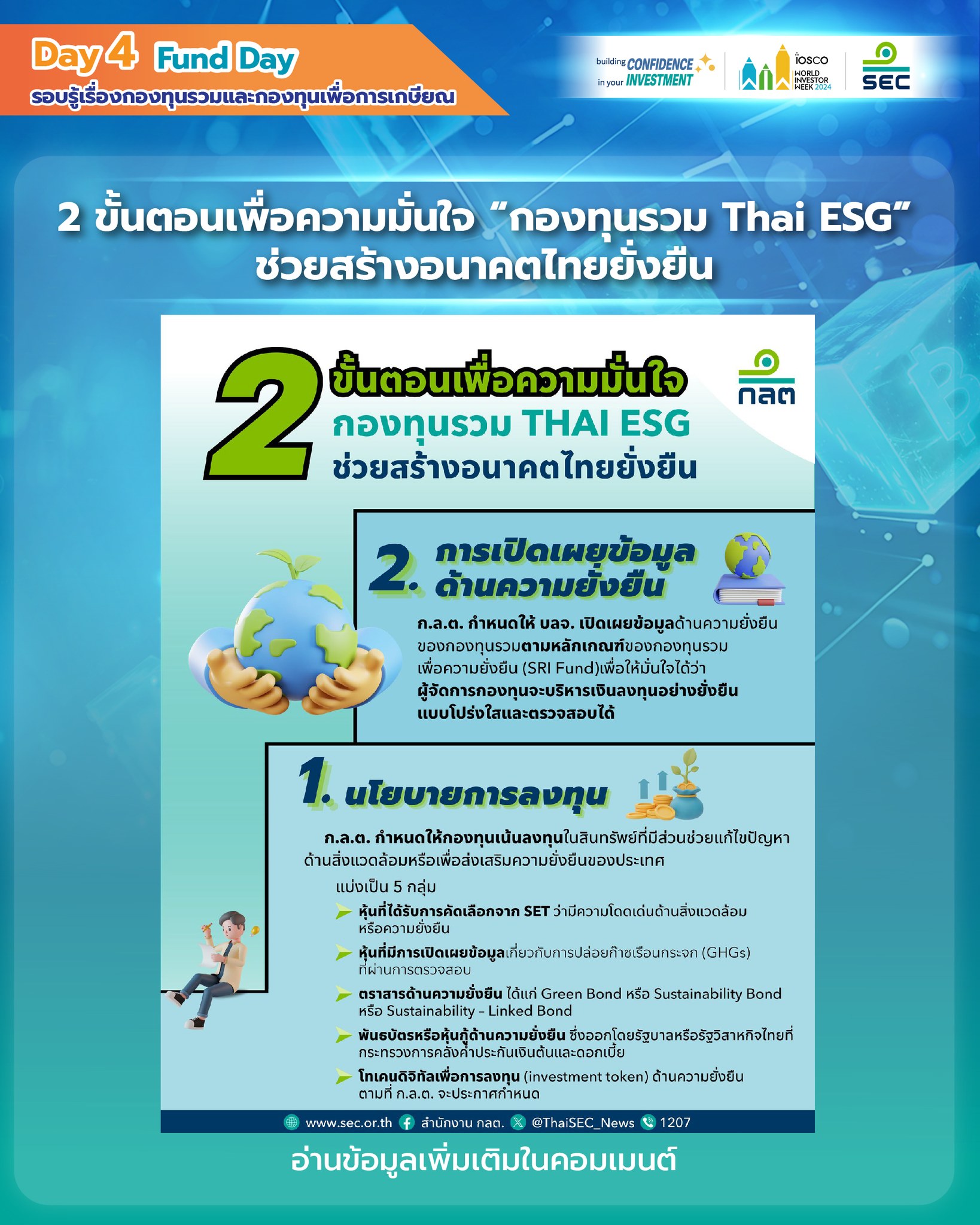 2 ขั้นตอนเพื่อความมั่นใจ “กองทุนรวม Thai ESG” ช่วยสร้างอนาคตไทยยั่งยืน (ก.ล.ต.)