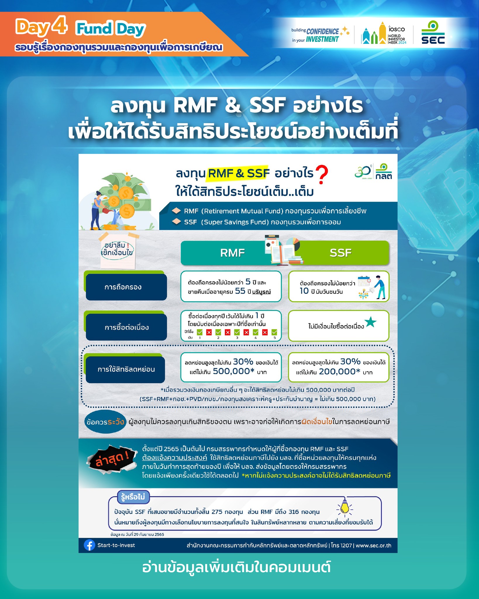 งทุน RMF & SSF อย่างไร เพื่อให้ได้รับสิทธิประโยชน์ย่างเต็มที่ (ก.ล.ต.)