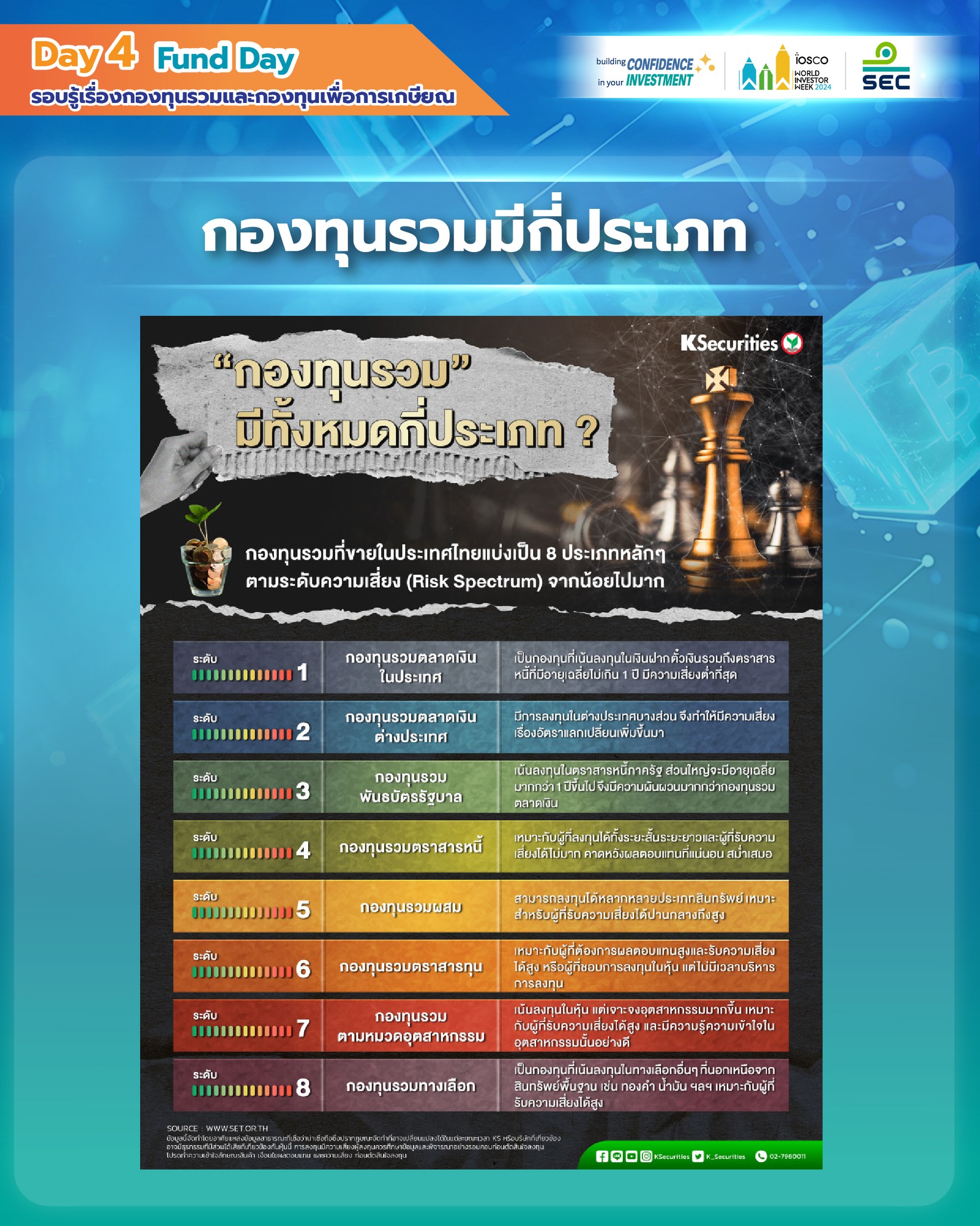 ​  รู้ก่อนซื้อ : ระดับความเสี่ยงกองทุนรวม (ก.ล.ต.)
