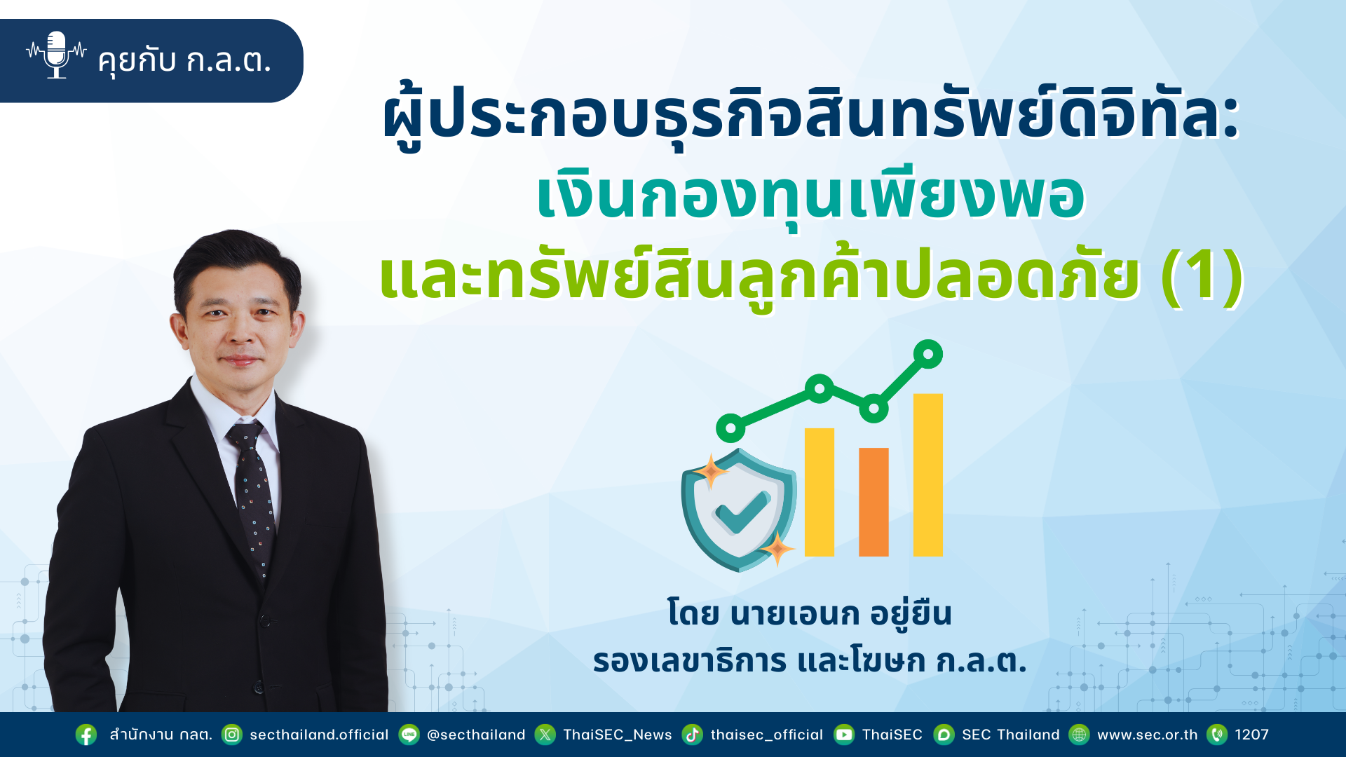 จากบทความ "ผู้ประกอบธุรกิจสินทรัพย์ดิจิทัล : เงินกองทุนเพียงพอและทรัพย์สินลูกค้าปลอดภัย (1)" โดยนายเอนก อยู่ยืน รองเลขาธิการ และโฆษก สำนักงานคณะกรรมการกำกับหลักทรัพย์และตลาดหลักทรัพย์ (ก.ล.ต.) ในคอลัมน์ "คุยกับ ก.ล.ต." นสพ.กรุงเทพธุรกิจ