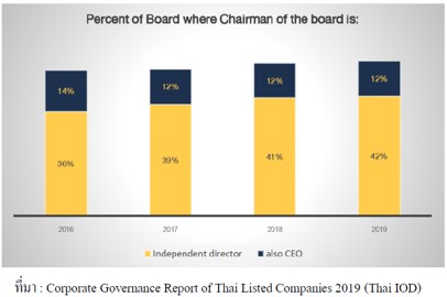 นอกจากนี้ หากกรรมการผู้จัดการหรือประธานเจ้าหน้าที่บริหาร ทำหน้าที่ประธานกรรมการ อาจไม่เอื้อให้คณะกรรมการใช้ดุลยพินิจอย่างเป็น อิสระ เป็นการเพิ่มความเสี่ยงด้านการกำกับดูแลกิจการ